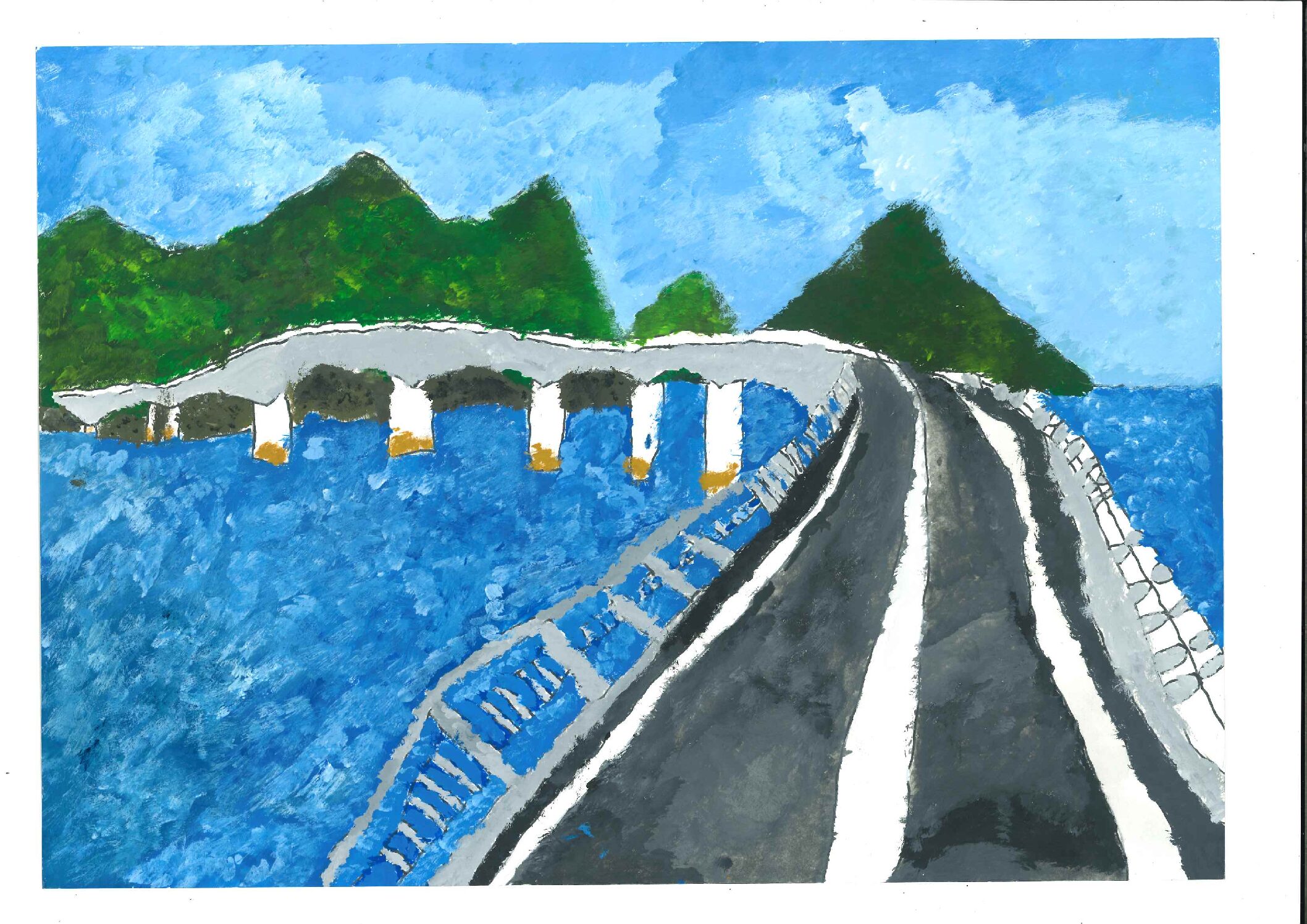 きごはイルカ。きせつは冬。イルカやクジラは、一年じゅうみかけますが、はいくでは冬のきごになっています。とくにイルカはよく見かけます。あそびずきで、よくふねとおいかけっこをしますが、うみのうえをうきあがってはしるこうそくせんを「はねる」ということばでひょうげんしているのが、イルカのようすもそうぞうさせることばになっています。こうそくせんはこしき島と本土をつなぐふねですが、スピード感のあるはいくがうまれました。